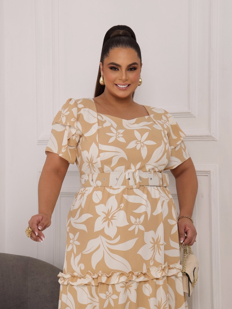 VESTIDO SORAYA PLUS - FLORAL NUDE - (LD)